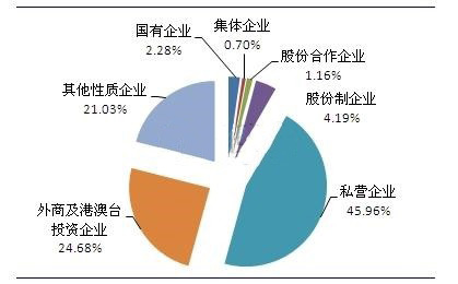 國有企業(yè)數(shù)量占比2.28%;股份合作企業(yè)和集體企業(yè)數(shù)量占比分別為1.16%和0.70%。